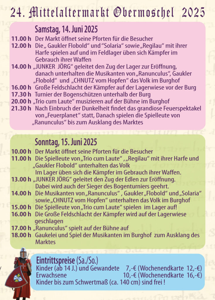 24. Mittelalterliches Spectaculum in Obermoschel 14. und 15. Juni 2025